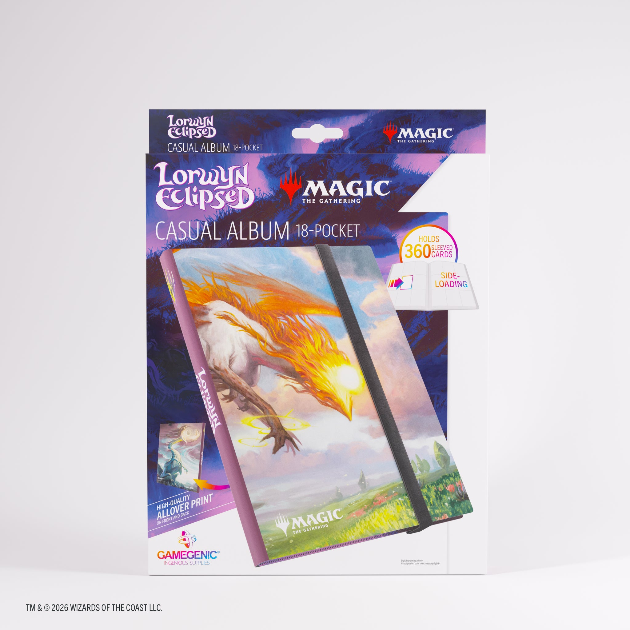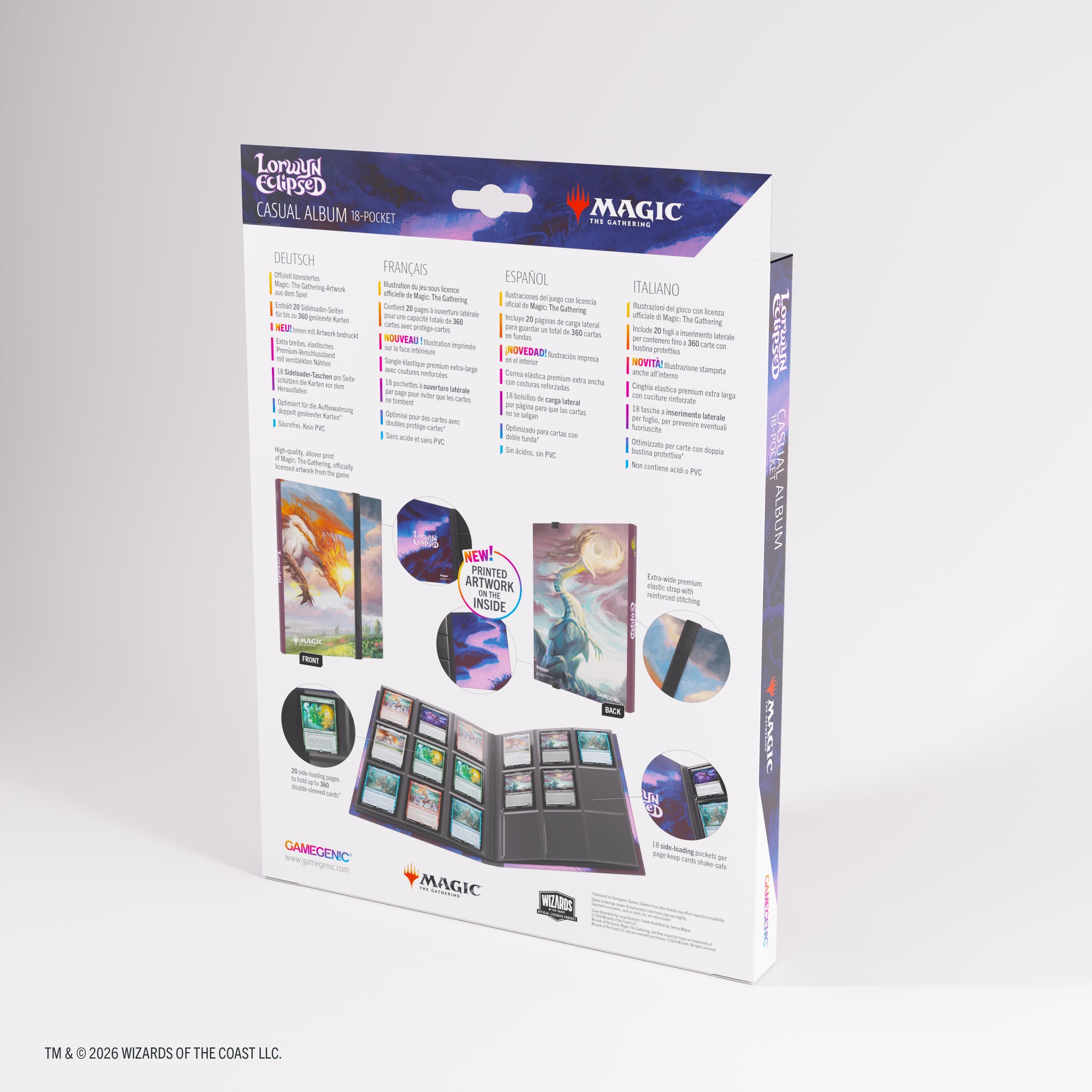 The Casual 18-Pocket Album has a colorful cover featuring high-quality, iconic full-art prints from the game. It holds 20 pages with 18 side-loading pockets each, for a total capacity of 360 cards (even double-sleeved). Black pages and strap complete the overall classy look. The extra-wide elastic strap with reinforced stitching safely closes the album.