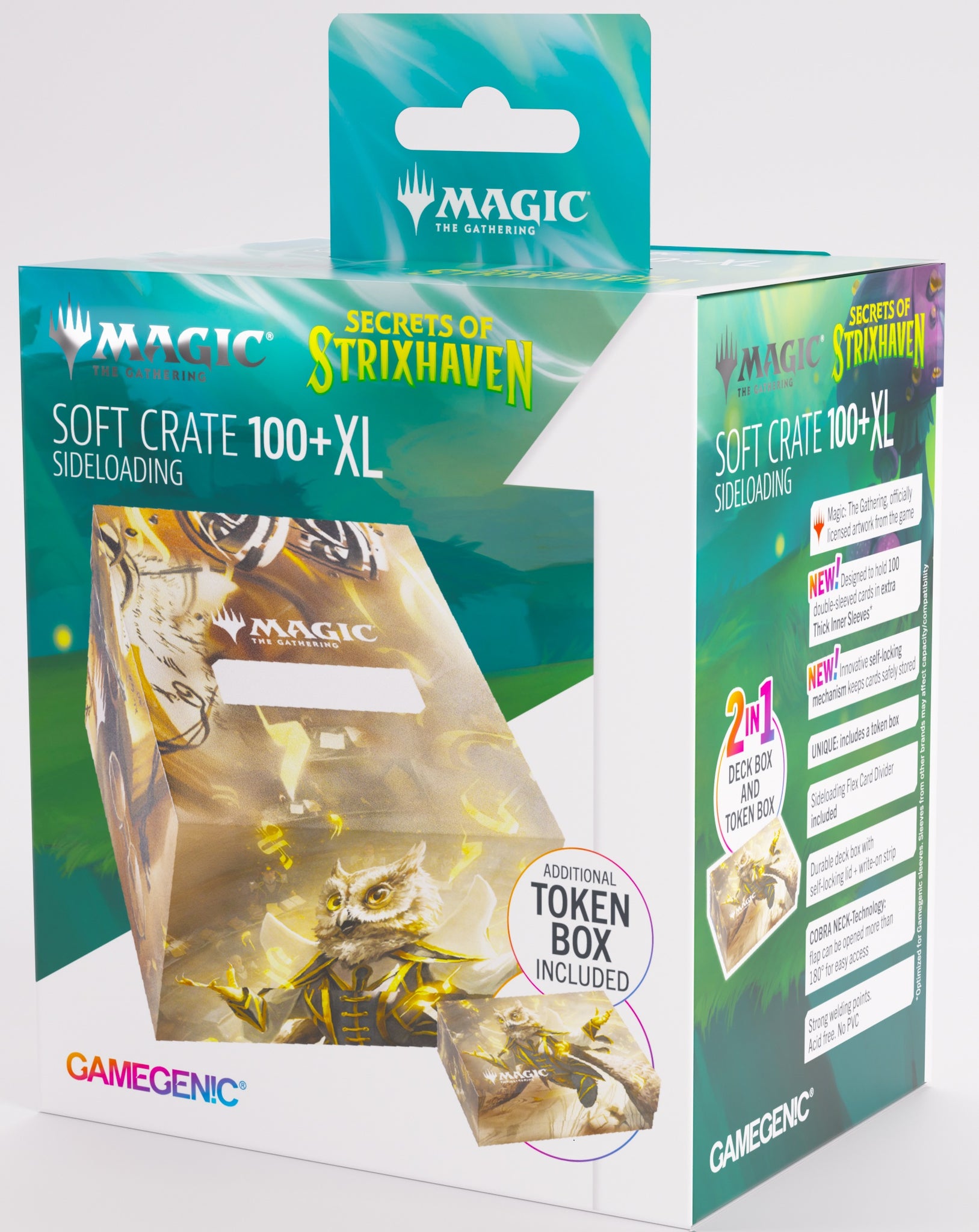 The budget-friendly Soft Crate 100+ XL Sideloading combines a Commander-size deck box with an integrated token box. Both are equipped with a