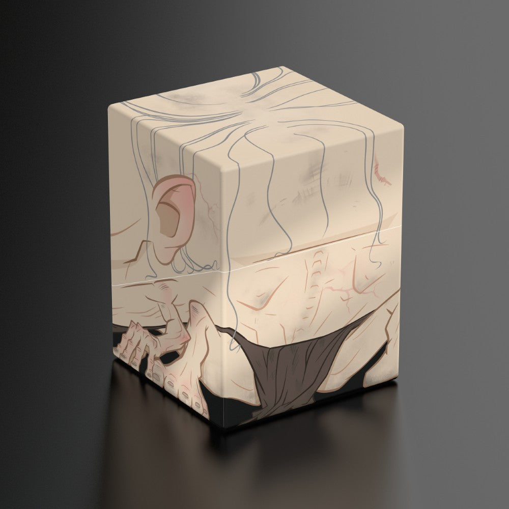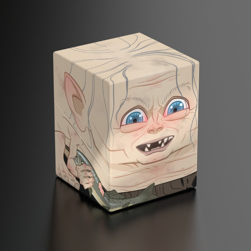 Collectible box for storing TCG decks, tabletop gaming accessories, and/or collectibles. The Sam Squaroe from the The Lord of the Rings edition holds up to 100 cards in double protective sleeves if used as a deck box. Squaroes are made from 78% renewable resources and fit perfectly into the separately available Collectors Case.
