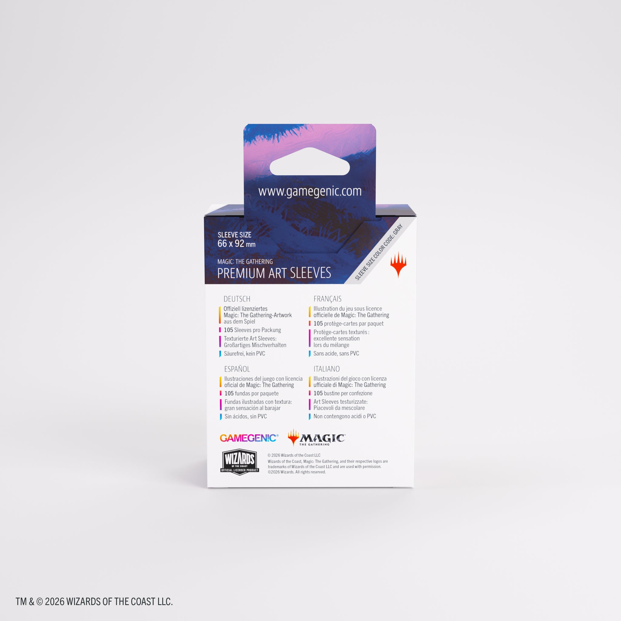 These premium-quality, full-color printed Art Sleeves with textured finish are a must-have for every fan of the game. The matte back and clear front provide an exceptional tactile feel and an incredibly smooth shuffle experience. Each pack includes 105 sleeves and comes in fully plastic-free full-art packaging with a retractable hanger.